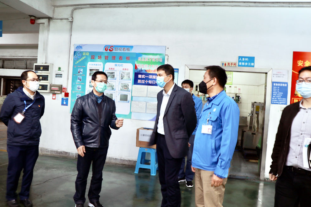 2月13日上午,中山市東區(qū)黨工委書記周俊峰一行深入香山股份檢查督導疫情防控和復工復產(chǎn)工作。香山股份董事長趙玉昆、總裁王咸車、監(jiān)事會主席陳博等陪同檢查。